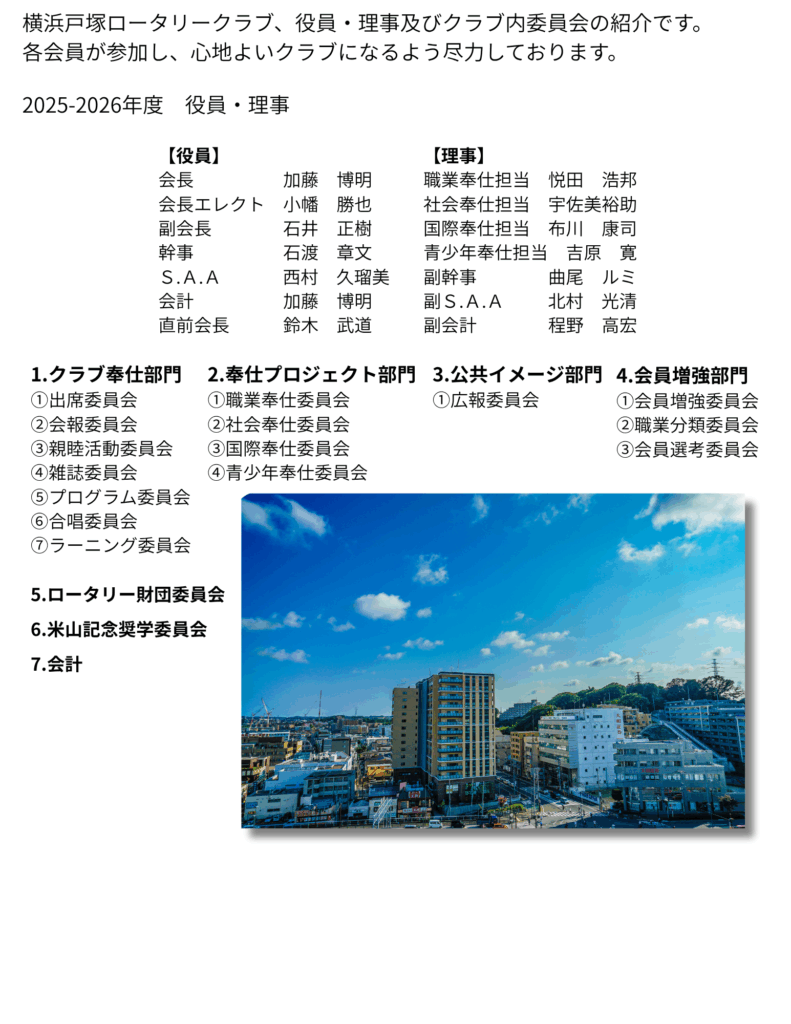 Copyright © 横浜戸塚ロータリークラブ(国際ロータリー第2590地区) All Rights Reserved.
